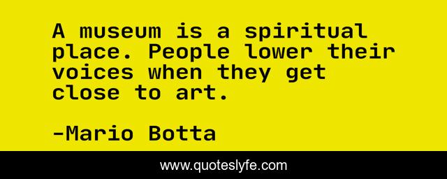 This page presents the quote "A museum is a spiritual place. People lower their voices when they get close to art.". Author of this quote is Mario Botta. This quote is about spiritual, museum, people,.