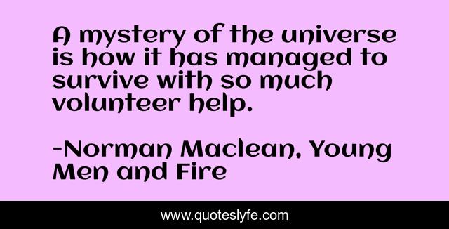 This page presents the quote "A mystery of the universe is how it has managed to survive with so much volunteer help.". Author of this quote is Norman Maclean, Young Men and Fire. This quote is about mystery, survive, universe, volunteer,.