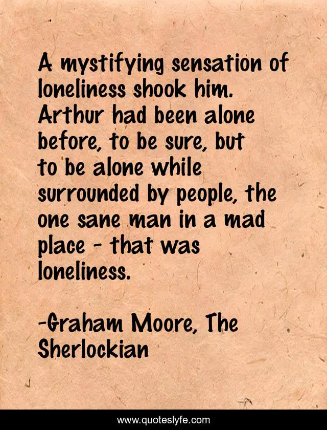 This page presents the quote "A mystifying sensation of loneliness shook him. Arthur had been alone before, to be sure, but to be alone while surrounded by people, the one sane man in a mad place - that was loneliness.". Author of this quote is Graham Moore, The Sherlockian. This quote is about loneliness, sherlockian, sherlock-holmes,.