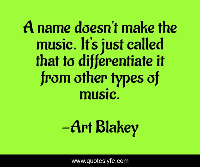 This page presents the quote "A name doesn't make the music. It's just called that to differentiate it from other types of music.". Author of this quote is Art Blakey. This quote is about just, name, types,.