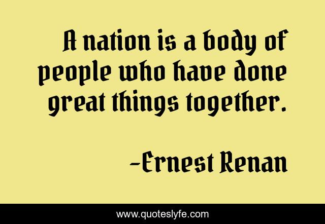 This page presents the quote "A nation is a body of people who have done great things together.". Author of this quote is Ernest Renan. This quote is about patriotism, nationalism,.