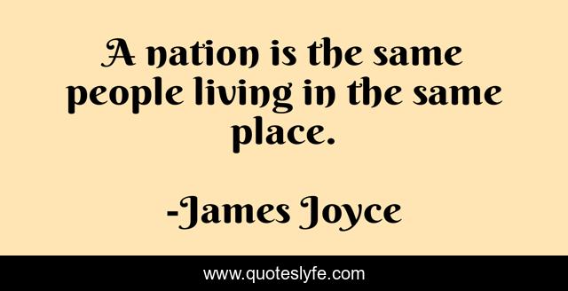 This page presents the quote "A nation is the same people living in the same place.". Author of this quote is James Joyce. This quote is about living, place, people,.