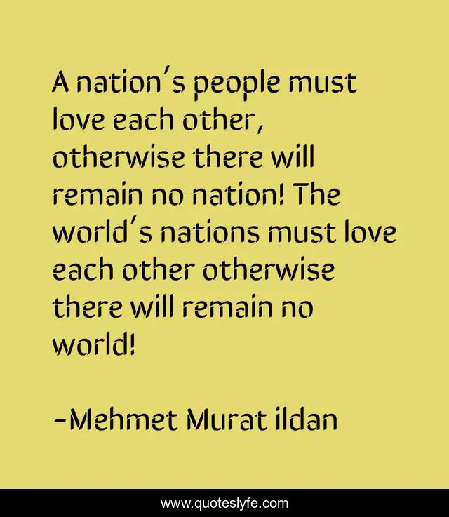"Mehmet Murat ildan Quotes." Quoteslyfe.com, 2025. Sat. 06 Dec. 2025. <https://www.quoteslyfe.com/quote/A-nation-s-people-must-love-each-89658>.