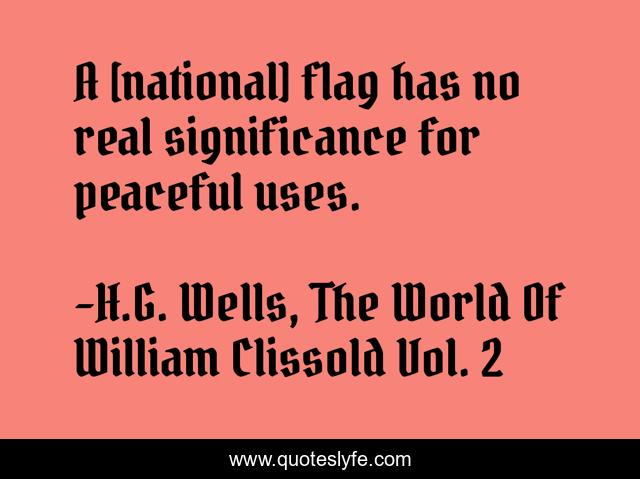 "H.G. Wells, The World Of William Clissold Vol. 2 Quotes." Quoteslyfe.com, 2025. Mon. 08 Dec. 2025. <https://www.quoteslyfe.com/quote/A-national-flag-has-no-real-significance-52949>.
