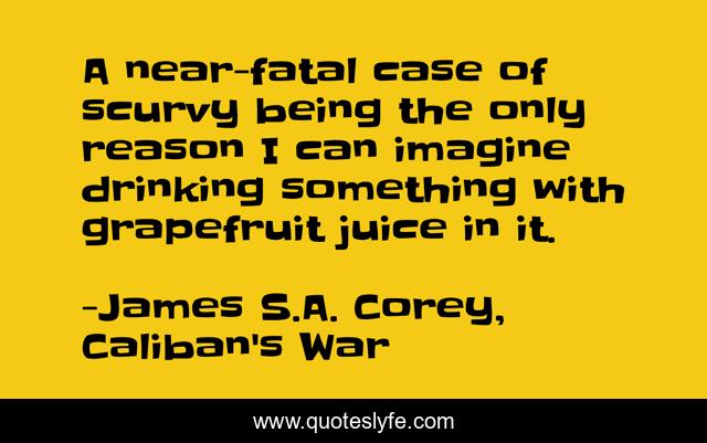 This page presents the quote "A near-fatal case of scurvy being the only reason I can imagine drinking something with grapefruit juice in it.". Author of this quote is James S.A. Corey, Caliban's War. This quote is about drinking, grapefruit, scurvy, grapefruit-juice,.