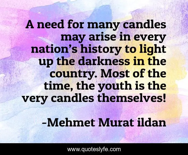 This page presents the quote "A need for many candles may arise in every nation’s history to light up the darkness in the country. Most of the time, the youth is the very candles themselves!". Author of this quote is Mehmet Murat ildan. .