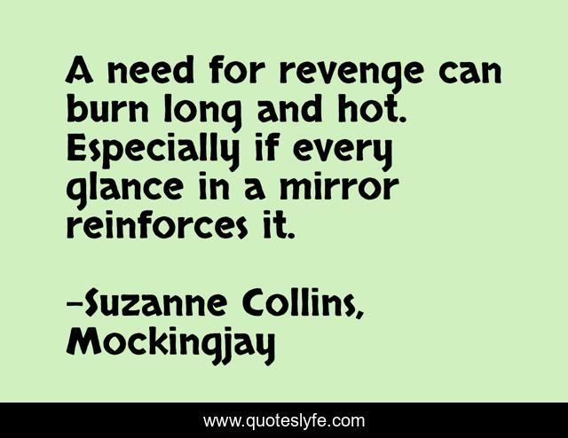 This page presents the quote "A need for revenge can burn long and hot. Especially if every glance in a mirror reinforces it.". Author of this quote is Suzanne Collins, Mockingjay. This quote is about need, reinforce, revenge, truth,.