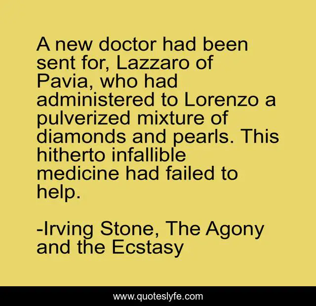 "Irving Stone, The Agony and the Ecstasy Quotes." Quoteslyfe.com, 2025. Tue. 09 Dec. 2025. <https://www.quoteslyfe.com/quote/A-new-doctor-had-been-sent-for-70366>.
