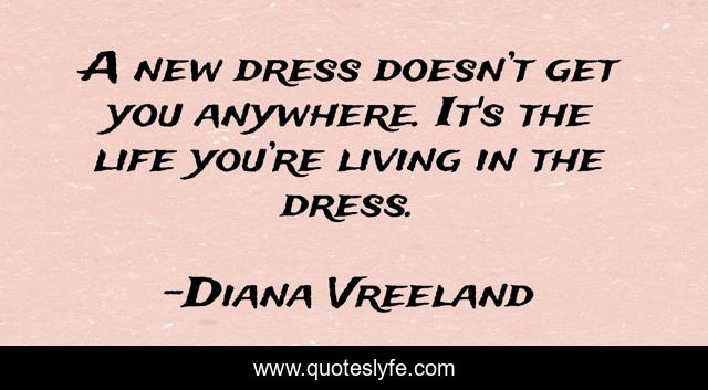 This page presents the quote "A new dress doesn’t get you anywhere. It's the life you’re living in the dress.". Author of this quote is Diana Vreeland. .