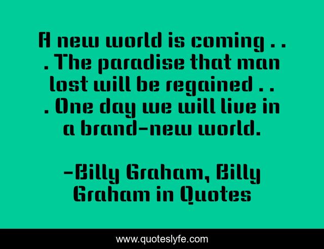 "Billy Graham, Billy Graham in Quotes Quotes." Quoteslyfe.com, 2025. Sat. 06 Dec. 2025. <https://www.quoteslyfe.com/quote/A-new-world-is-coming-The-paradise-152975>.