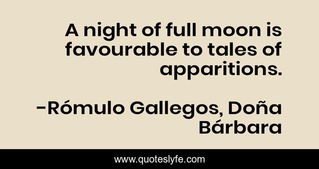 This page presents the quote "A night of full moon is favourable to tales of apparitions.". Author of this quote is Rómulo Gallegos, Doña Bárbara. .