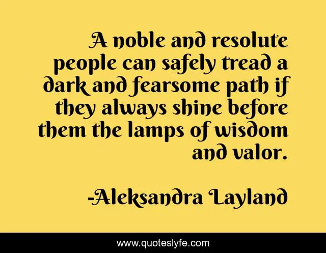 This page presents the quote "A noble and resolute people can safely tread a dark and fearsome path if they always shine before them the lamps of wisdom and valor.". Author of this quote is Aleksandra Layland. This quote is about enthusiasm, spiritual-wisdom, inspirational,.