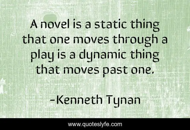 This page presents the quote "A novel is a static thing that one moves through a play is a dynamic thing that moves past one.". Author of this quote is Kenneth Tynan. .