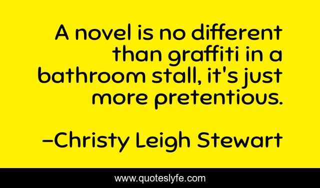 This page presents the quote "A novel is no different than graffiti in a bathroom stall, it's just more pretentious.". Author of this quote is Christy Leigh Stewart. This quote is about art, writing,.