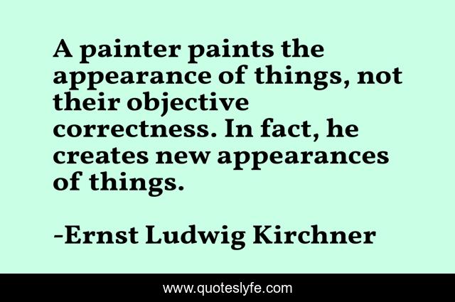 This page presents the quote "A painter paints the appearance of things, not their objective correctness. In fact, he creates new appearances of things.". Author of this quote is Ernst Ludwig Kirchner. .