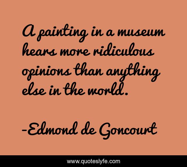 This page presents the quote "A painting in a museum hears more ridiculous opinions than anything else in the world.". Author of this quote is Edmond de Goncourt. .