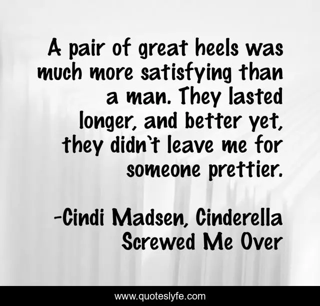 This page presents the quote "A pair of great heels was much more satisfying than a man. They lasted longer, and better yet, they didn’t leave me for someone prettier.". Author of this quote is Cindi Madsen, Cinderella Screwed Me Over. This quote is about relationships, humor, shoes, men, romance, romantic-comedy,.