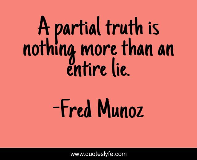 This page presents the quote "A partial truth is nothing more than an entire lie.". Author of this quote is Fred Munoz. This quote is about deception, dishonesty, truth, lie,.