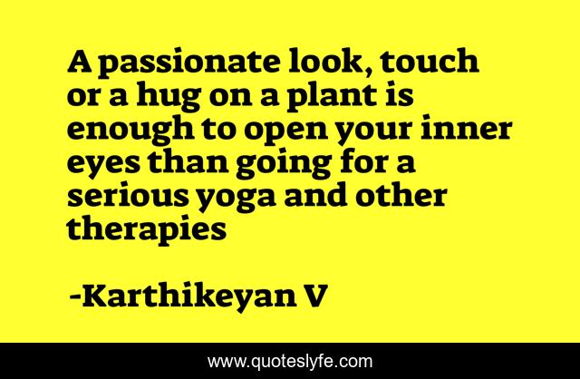 This page presents the quote "A passionate look, touch or a hug on a plant is enough to open your inner eyes than going for a serious yoga and other therapies". Author of this quote is Karthikeyan V. This quote is about horticulture-therapy, plants, gardens, nature,.