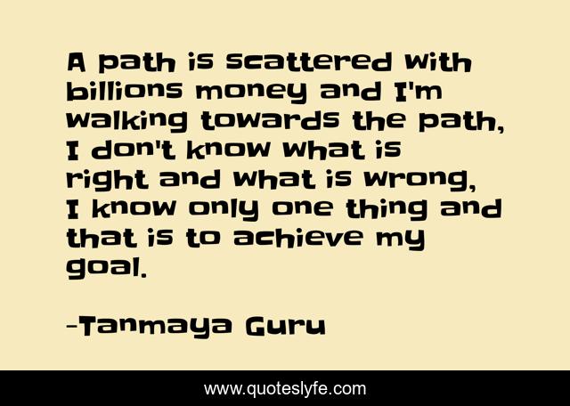 This page presents the quote "A path is scattered with billions money and I'm walking towards the path, I don't know what is right and what is wrong, I know only one thing and that is to achieve my goal.". Author of this quote is Tanmaya Guru. .