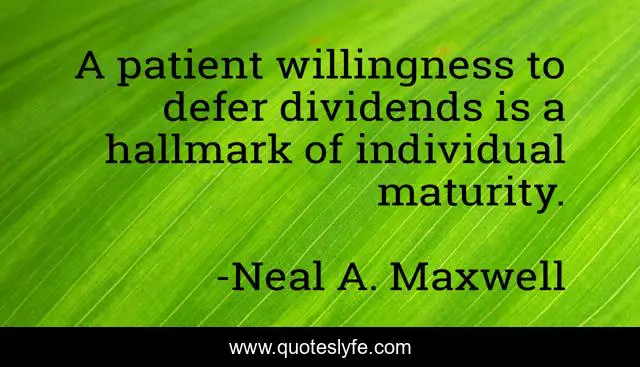 "Neal A. Maxwell Quotes." Quoteslyfe.com, 2025. Fri. 05 Dec. 2025. <https://www.quoteslyfe.com/quote/A-patient-willingness-to-defer-dividends-is-193121>.