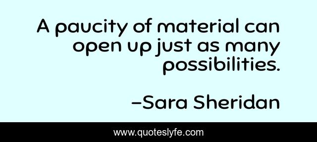 This page presents the quote "A paucity of material can open up just as many possibilities.". Author of this quote is Sara Sheridan. This quote is about material, gap, possibilities, imagination, writing, research,.