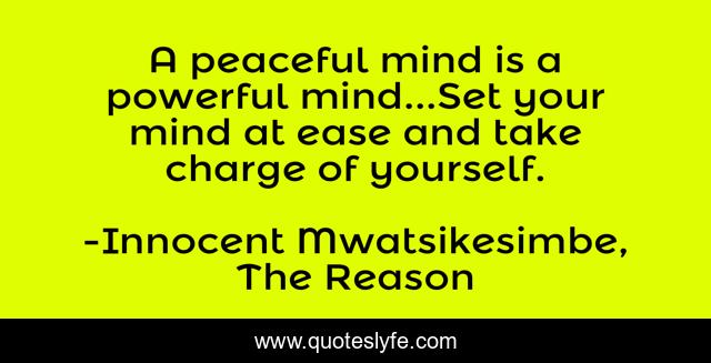 This page presents the quote "A peaceful mind is a powerful mind...Set your mind at ease and take charge of yourself.". Author of this quote is Innocent Mwatsikesimbe, The Reason. This quote is about happiness, peace, mind, power, success,.