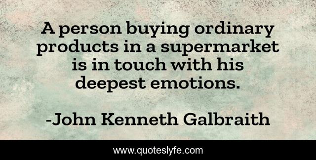 This page presents the quote "A person buying ordinary products in a supermarket is in touch with his deepest emotions.". Author of this quote is John Kenneth Galbraith. This quote is about consumerism, economics,.