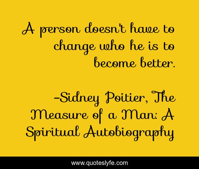 This page presents the quote "A person doesn't have to change who he is to become better.". Author of this quote is Sidney Poitier, The Measure of a Man: A Spiritual Autobiography. This quote is about confidence, positive, motivational, optimistic, inspirational, enthusiasm,.