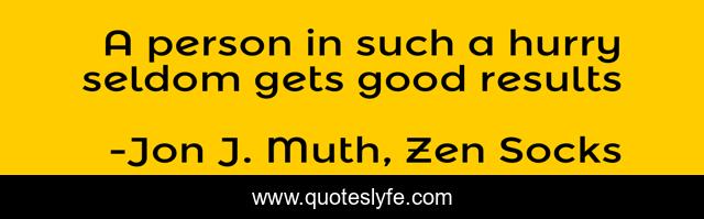 This page presents the quote "A person in such a hurry seldom gets good results". Author of this quote is Jon J. Muth, Zen Socks. This quote is about zen-socks, life-lessons,.