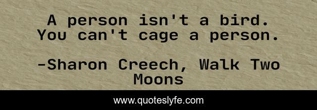 This page presents the quote "A person isn't a bird. You can't cage a person.". Author of this quote is Sharon Creech, Walk Two Moons. .