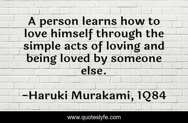 This page presents the quote "A person learns how to love himself through the simple acts of loving and being loved by someone else.". Author of this quote is Haruki Murakami, 1Q84. This quote is about self-love, love, affection,.