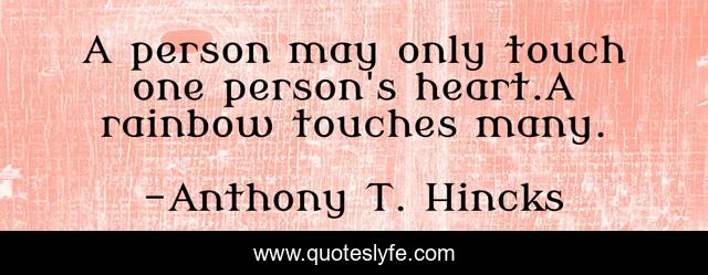 This page presents the quote "A person may only touch one person's heart.A rainbow touches many.". Author of this quote is Anthony T. Hincks. This quote is about heart, love, rainbow, philosophy, touch, affection,.