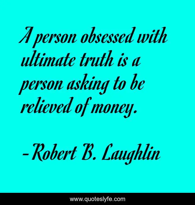This page presents the quote "A person obsessed with ultimate truth is a person asking to be relieved of money.". Author of this quote is Robert B. Laughlin. This quote is about humor, truth,.