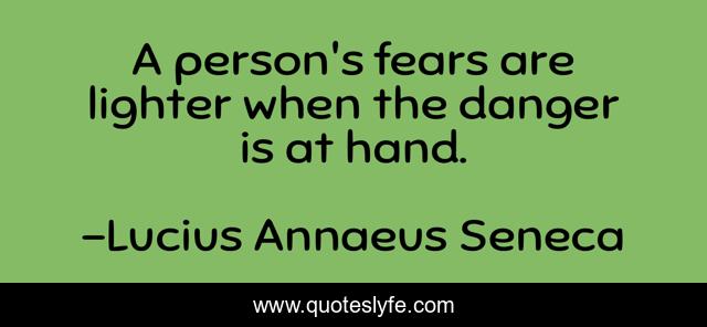 This page presents the quote "A person's fears are lighter when the danger is at hand.". Author of this quote is Lucius Annaeus Seneca. This quote is about person, hand, danger,.