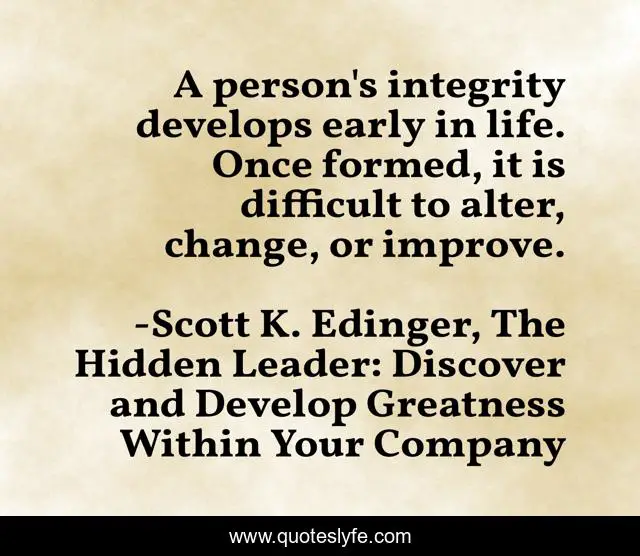 "Scott K. Edinger, The Hidden Leader: Discover and Develop Greatness Within Your Company Quotes." Quoteslyfe.com, 2025. Sun. 07 Dec. 2025. <https://www.quoteslyfe.com/quote/A-person-s-integrity-develops-early-in-117158>.