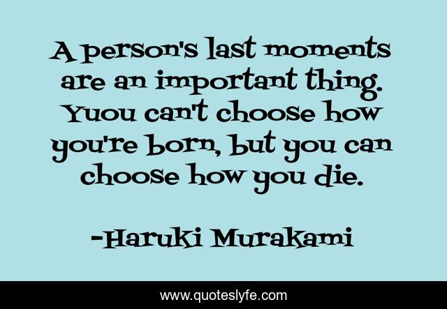 This page presents the quote "A person's last moments are an important thing. Yuou can't choose how you're born, but you can choose how you die.". Author of this quote is Haruki Murakami. This quote is about born, die,.
