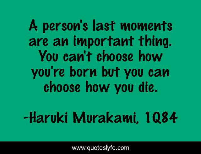 This page presents the quote "A person's last moments are an important thing. You can't choose how you're born but you can choose how you die.". Author of this quote is Haruki Murakami, 1Q84. .