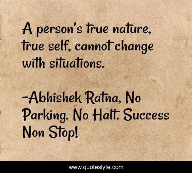 "Abhishek Ratna, No Parking. No Halt. Success Non Stop! Quotes." Quoteslyfe.com, 2025. Mon. 08 Dec. 2025. <https://www.quoteslyfe.com/quote/A-person-s-true-nature-true-self-109094>.