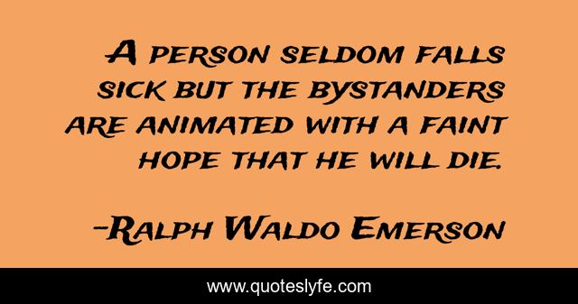 This page presents the quote "A person seldom falls sick but the bystanders are animated with a faint hope that he will die.". Author of this quote is Ralph Waldo Emerson. This quote is about medicine, sickness,.