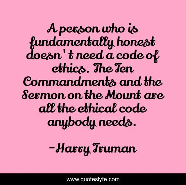 This page presents the quote "A person who is fundamentally honest doesn't need a code of ethics. The Ten Commandments and the Sermon on the Mount are all the ethical code anybody needs.". Author of this quote is Harry Truman. .