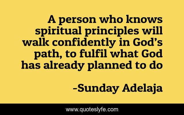 This page presents the quote "A person who knows spiritual principles will walk confidently in God’s path, to fulfil what God has already planned to do". Author of this quote is Sunday Adelaja. This quote is about confidence, god-s-plans,.