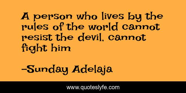 This page presents the quote "A person who lives by the rules of the world cannot resist the devil, cannot fight him". Author of this quote is Sunday Adelaja. This quote is about devil, rules, fight, resist, person, lives, world,.