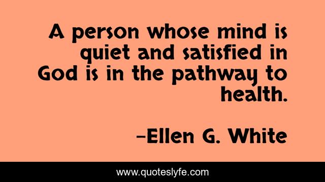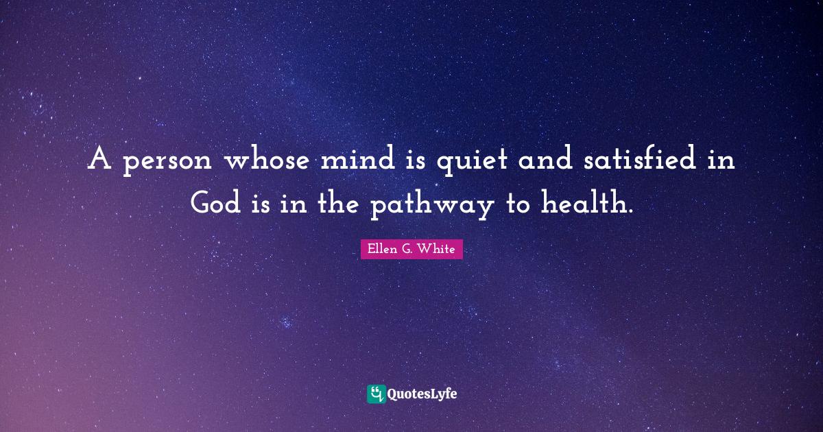 This page presents the quote "A person whose mind is quiet and satisfied in God is in the pathway to health.". Author of this quote is Ellen G. White. This quote is about god, mind, quiet,.