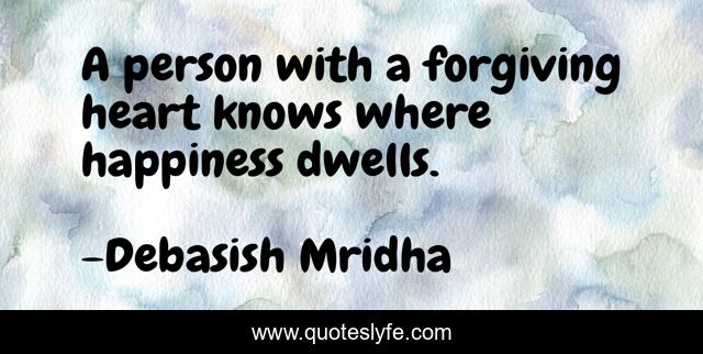 This page presents the quote "A person with a forgiving heart knows where happiness dwells.". Author of this quote is Debasish Mridha. This quote is about debasish, mridha, philosophy, debasish-mridha, forgiving, happiness-dwells, happiness, forgiving-heart,.