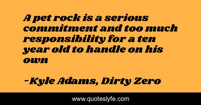 This page presents the quote "A pet rock is a serious commitment and too much responsibility for a ten year old to handle on his own". Author of this quote is Kyle Adams, Dirty Zero. This quote is about awarness, information, pet, rock,.