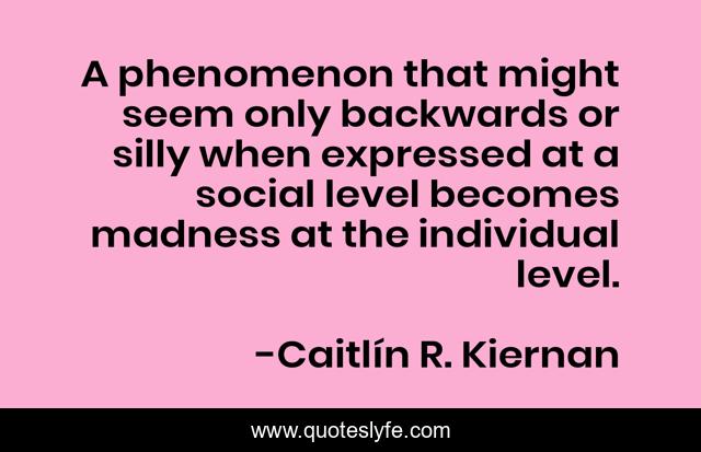 This page presents the quote "A phenomenon that might seem only backwards or silly when expressed at a social level becomes madness at the individual level.". Author of this quote is Caitlín R. Kiernan. This quote is about cultural-differences, mental-illness-discrimination, mental-illness, mental-illness-stigma,.