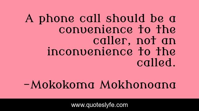 "Mokokoma Mokhonoana Quotes." Quoteslyfe.com, 2025. Sun. 07 Dec. 2025. <https://www.quoteslyfe.com/quote/A-phone-call-should-be-a-convenience-196729>.