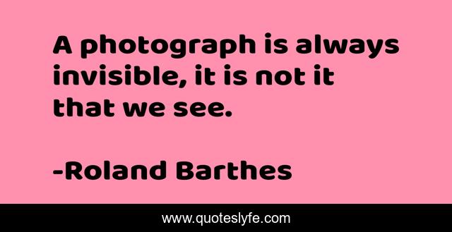 "Roland Barthes Quotes." Quoteslyfe.com, 2025. Sat. 06 Dec. 2025. <https://www.quoteslyfe.com/quote/A-photograph-is-always-invisible-it-is-238624>.