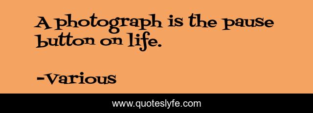 This page presents the quote "A photograph is the pause button on life.". Author of this quote is Various. This quote is about photography, art,.